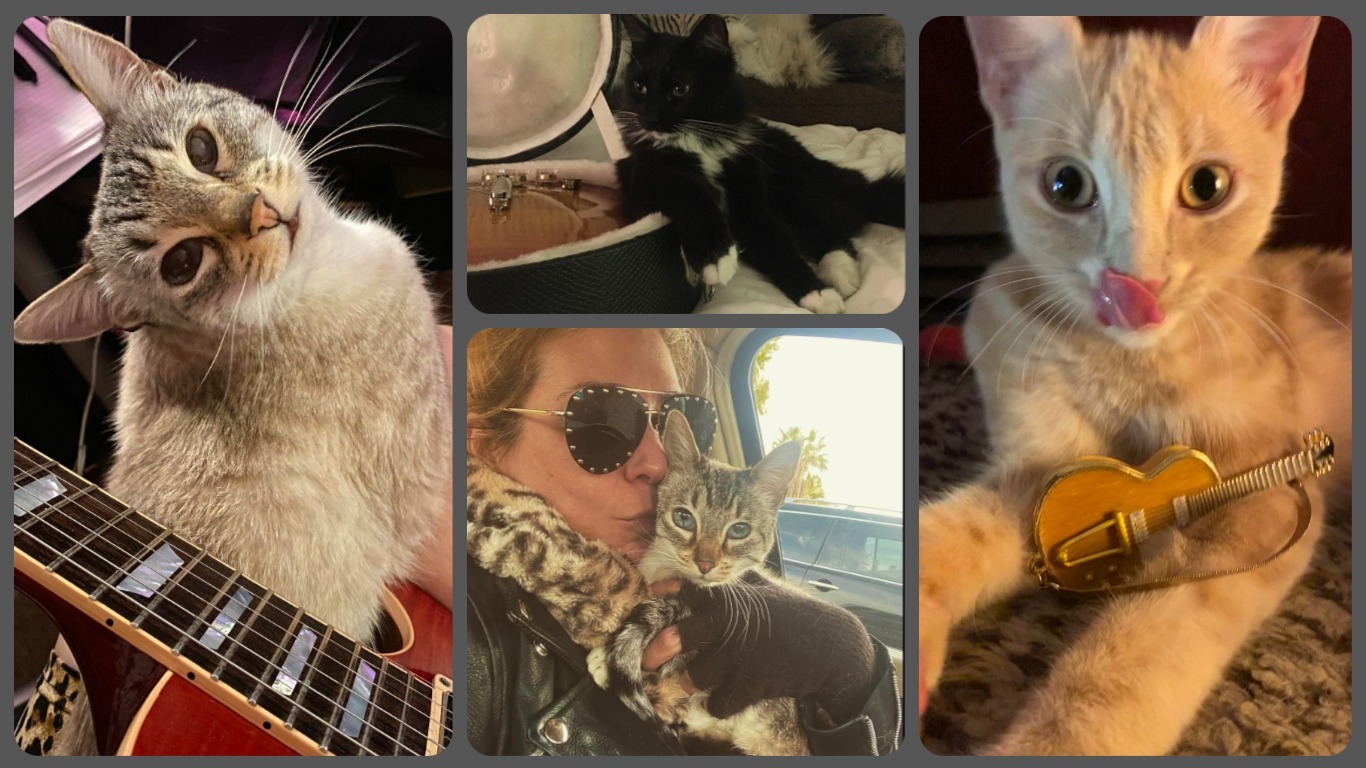 Her cats Angel, Mr. Jimmy Page and Melody seem to agree. "I named Page correctly because this cat is as obsessed with guitar as I am. They all come running when I head into the studio. Angel is a vibrato junkie...she loves being held when I sing."