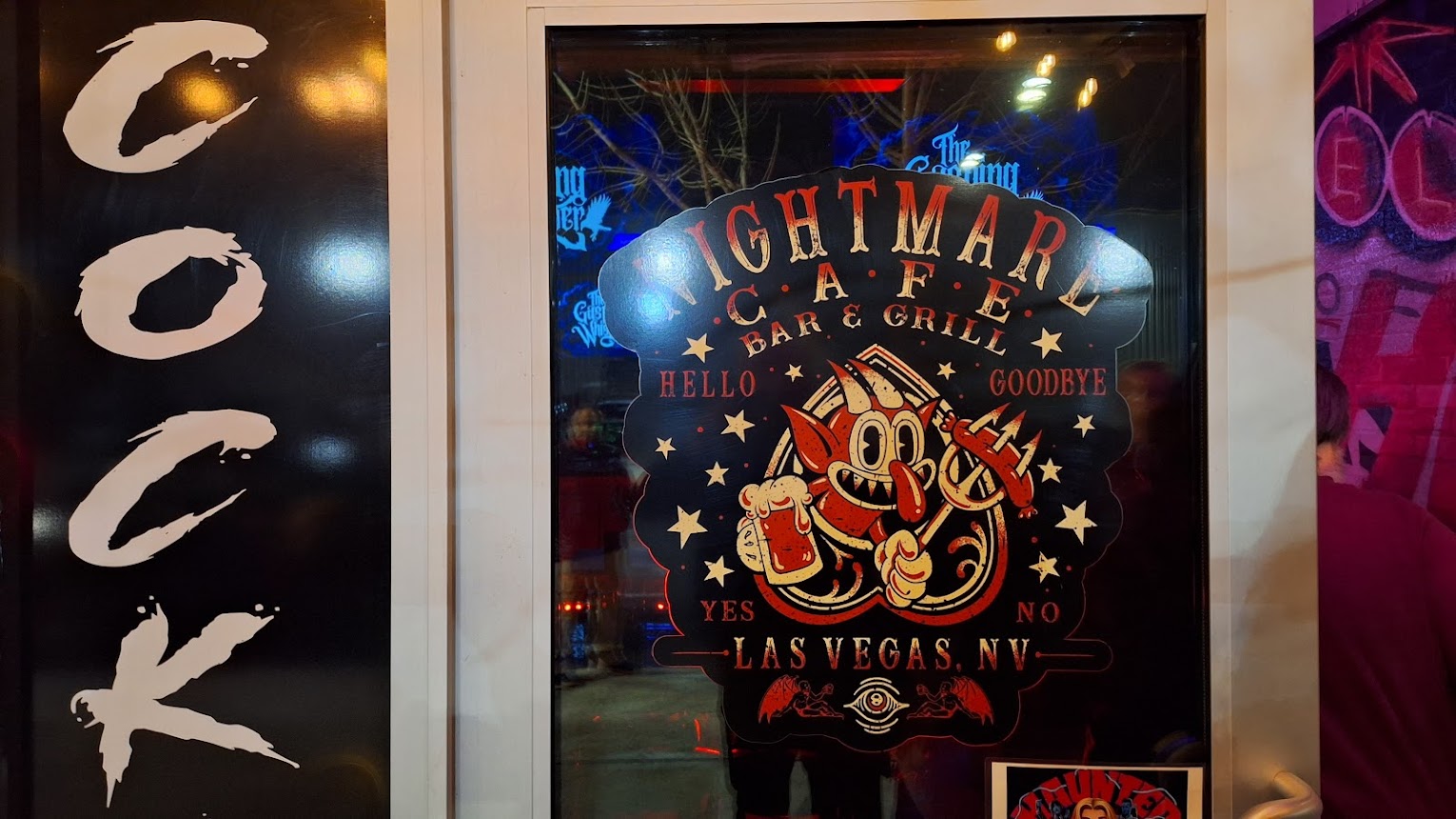 Nightmare Cafe is located at 1307 South Commerce Street in the Las Vegas Arts District. On-street parking is available for a fee.