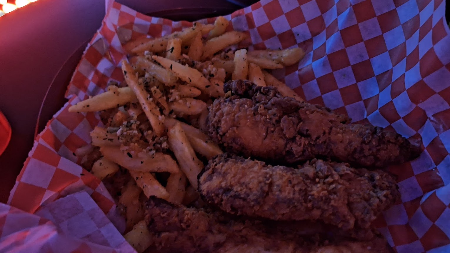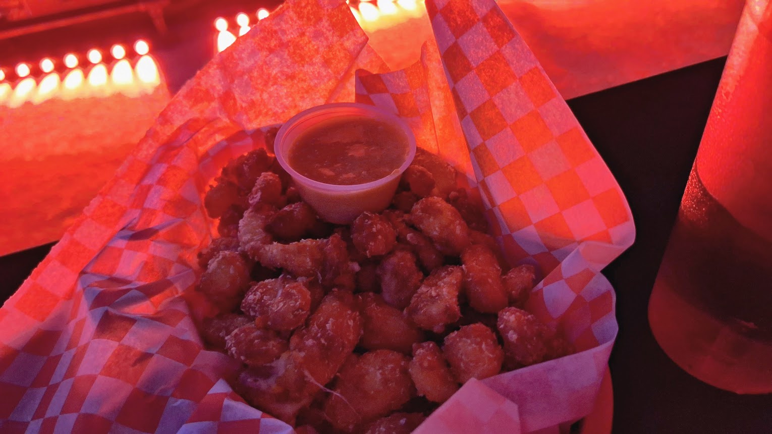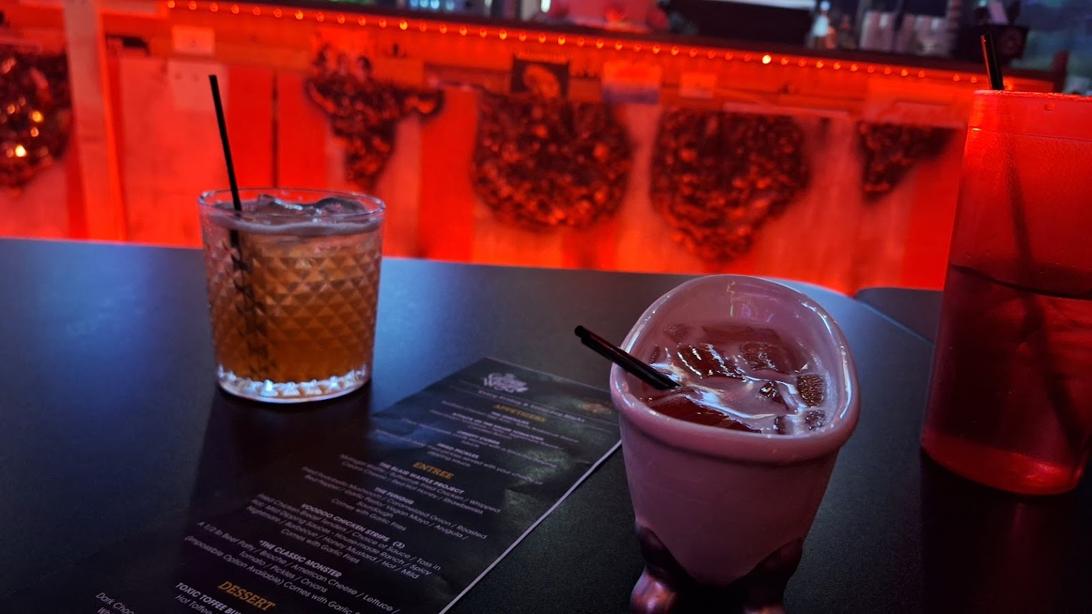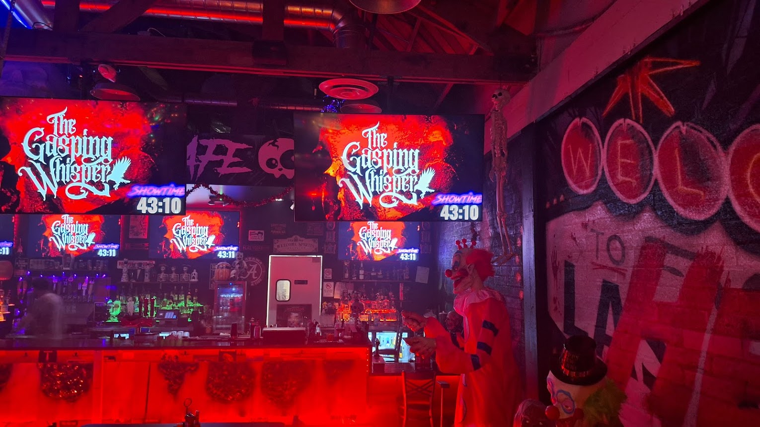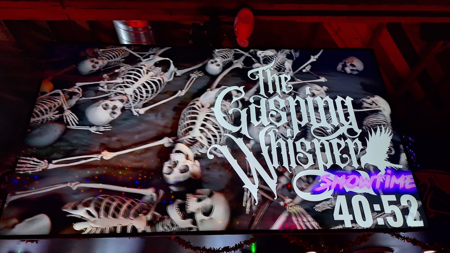 [embed]https://vimeo.com/909585856[/embed] Compared to recent big-budget duds like VOLTAIRE BELLE DE NUIT, the ingenuity and creative wit behind The Gasping Whisper are cheer-worthy. Costumes, lighting, props, music, performances, and video segments are uniformly flawless, suggesting a production created out of passion, not dollars and (lack of) sense. If there was one caveat to the evening, it was Nightmare Cafe's food offerings. The menu is familiar pub grub, but not necessarily memorable. Fried Cheese Curds ($12) were greasy and cold, and the Chicken Tenders were overcooked and too salty to finish.