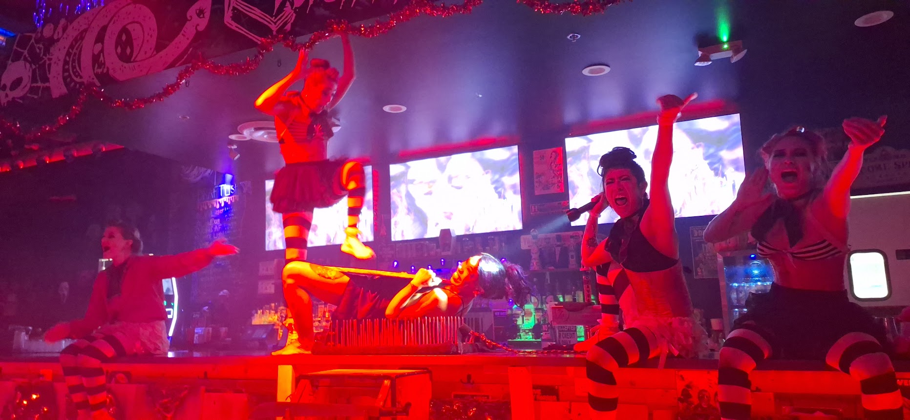 The adults-only show is performed at Nightmare Cafe, a horror-themed eatery and bar. Located at 1307 South Commerce Street in the Arts District, it's adjacent to Nightmare Toys. A popular store for fans of the horror genre, Nightmare Toys is packed with collectibles, costumes, and props.