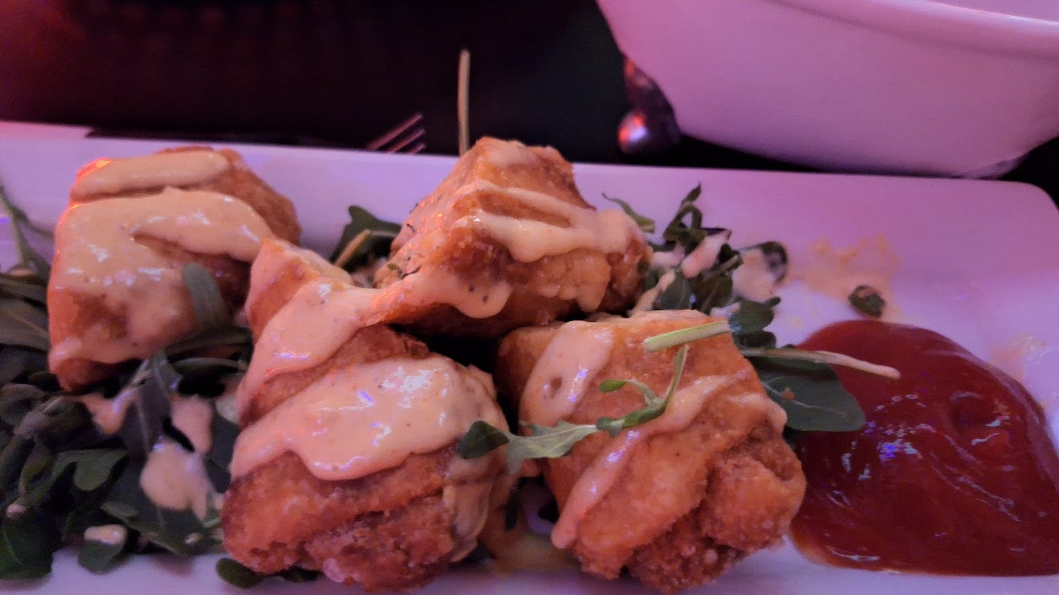 On the plus side, the Southern Chicken Egg Rolls ($13) were pretty decent, and cocktails like the Never Sleep Again (Cherry Vodka, Grenadine, Sprite, Jell-O "guts" - $14) are amusingly served in mini claw-foot bathtubs. Perhaps it was just an off-night in the kitchen, but there was more remaining than consumed at our table. To check out the Nightmare Cafe menu, head here.