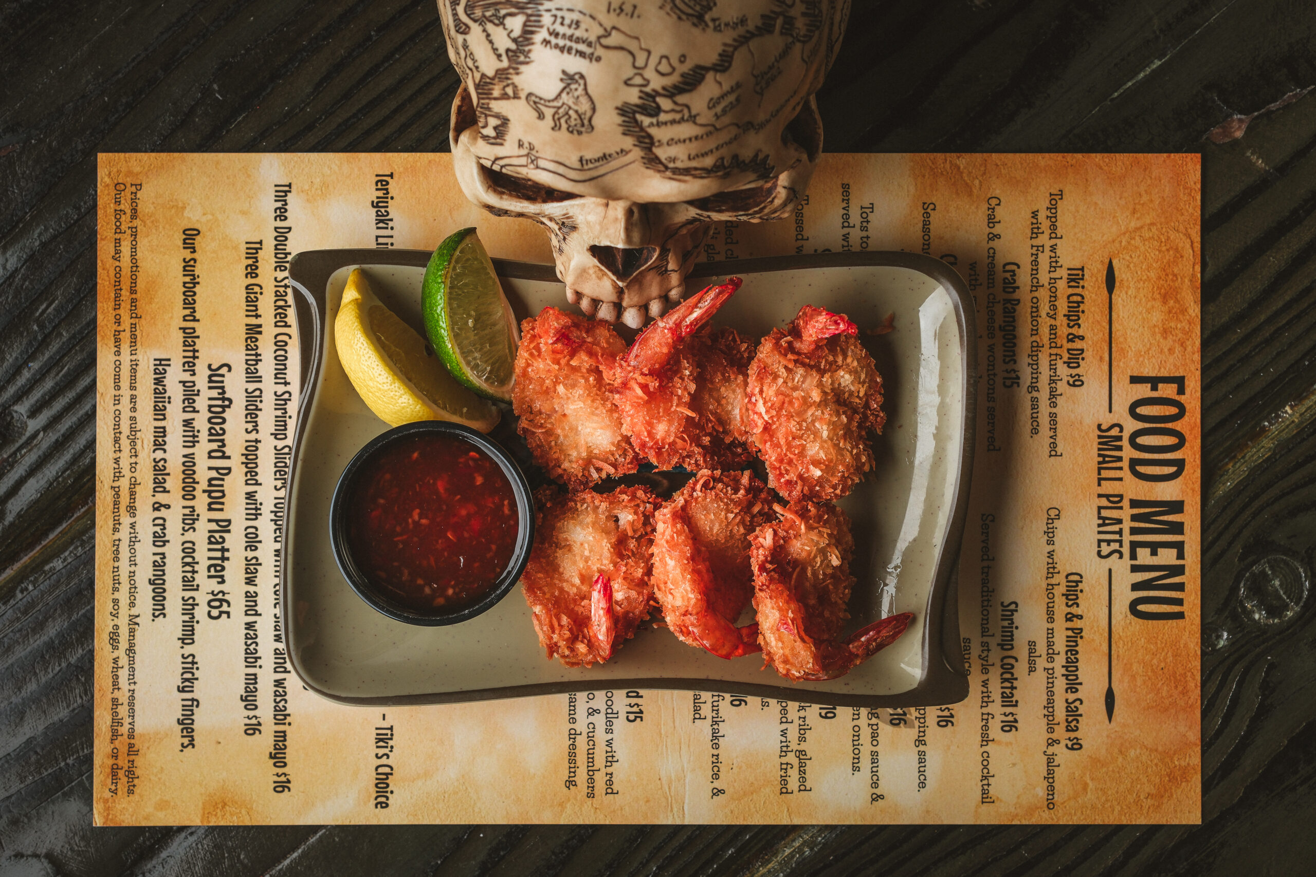The Golden Tiki will continue to offer current favorites including the Captain's Balls, Sticky Fingers, Hot Tots, Crab Rangoons, and its signature Surfboard Pupu Platter. Their menu is available 24/7 except during weekend brunch hours (12-3 pm Sat-Sun).