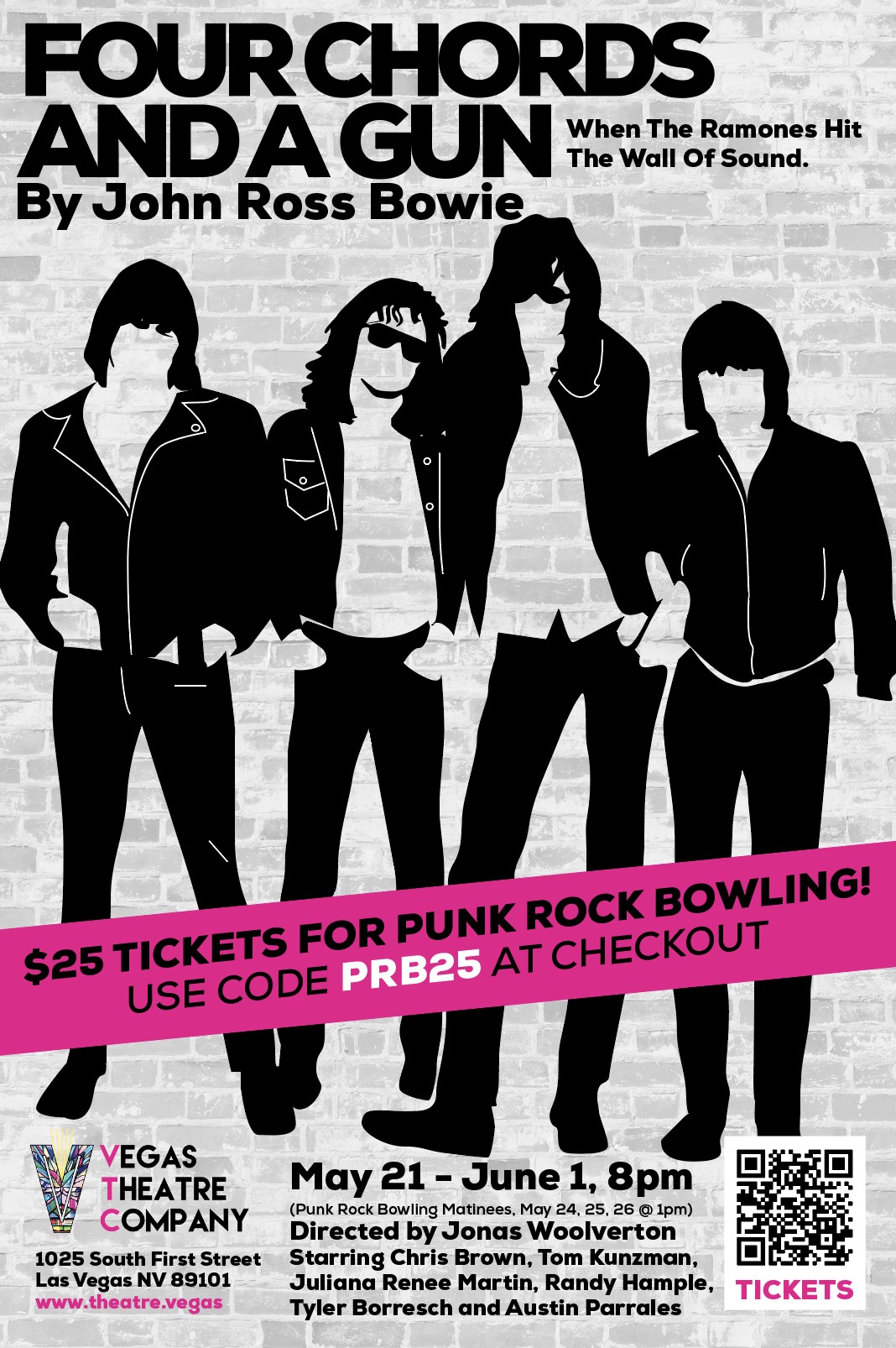 The drama within the band was plentiful enough to fill in the 2023 documentary THE RAMONES: End of the Century. In 2019, musician/actor/writer John Ross Bowie debuted FOUR CHORDS and a GUN, an onstage dramatization of the Spector/Ramones malestrom that would mark a significant event in music history. After a brief sold-out run in 2024, FOUR CHORDS and a GUN returns to Vegas Theater Company this week.