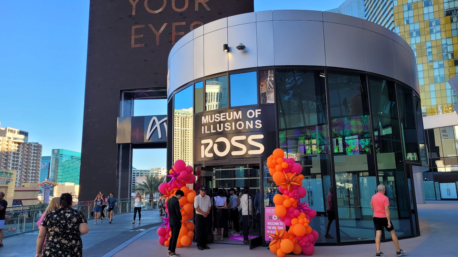Museum of Illusions is located inside the new 'Project 63' retail complex at the corner of Harmon Avenue and Las Vegas Boulevard. It's sandwiched between Cosmopolitan Hotel Casino and Shops at Crystals, where the ill-fated Harmon Hotel once stood. As with its competitor, there are family attractions nearby like Disney Animation Immersive, Princess Diana: The Exhibition, and Rainforest Cafe.