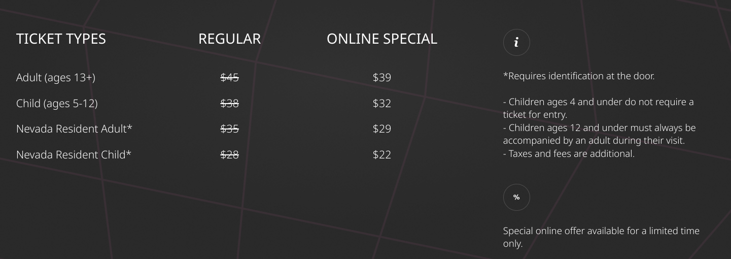 Here is a list of current fees and available discounts for each destination. Remember that all prices are subject to change, and proper identification is required to receive the listed offers.PARADOX MUSEUM TICKETS (order here)