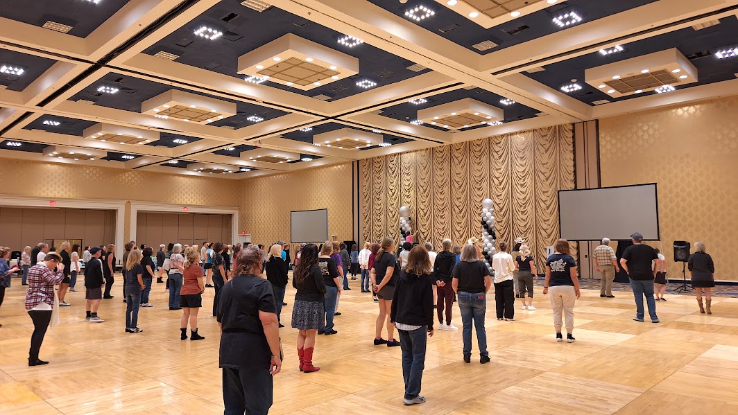 Vendors line the perimeters of the ballrooms, and ancillary activities fill both daytime and evenings. Events include fitness classes, a Silent Disco Dance Party, a Praise and Worship gathering, a Rock-A-Hula Dinner Show, T-Shirt Cutting Class, an Arabian Nights Show (with live camels), open dancing, and everyone's favorite...a Flash Mob.