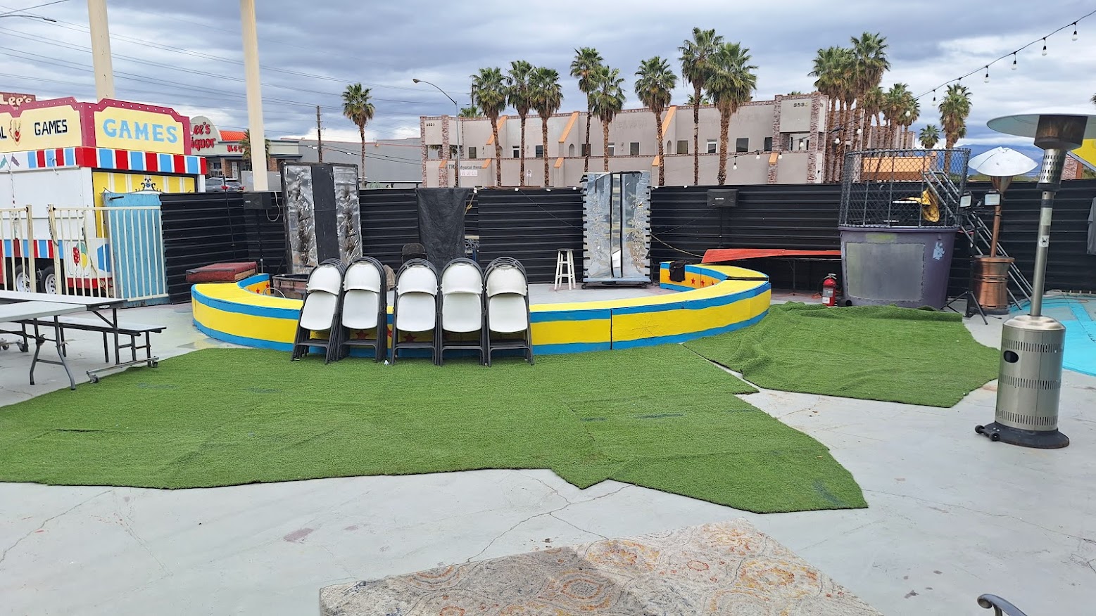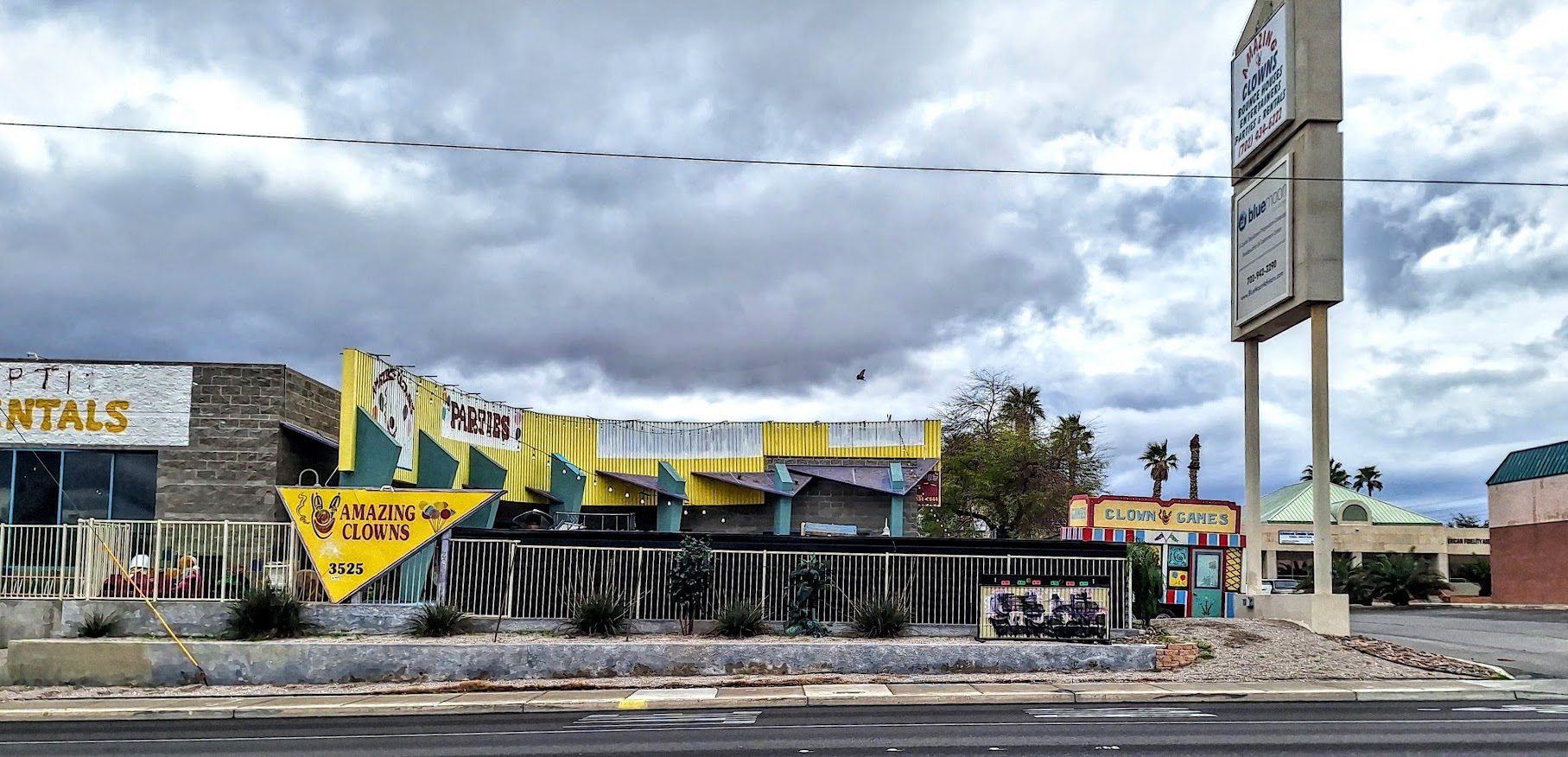 The location of Ray's Comedy World would be within a building that Ray has owned for the better part of two decades. Originally home to AMAZING CLOWNS, the center was created for events and children's parties. Its outdoor courtyard resembles an old-time carnival midway, with a party room, stage, and kitschy but charming circus decor within.