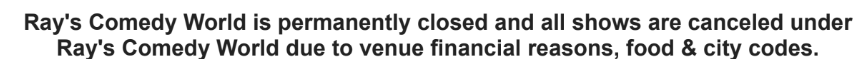Ray's Comedy World is permanently closed and all shows are canceled under Ray's Comedy World due to venue financial reasons, food & city codes.