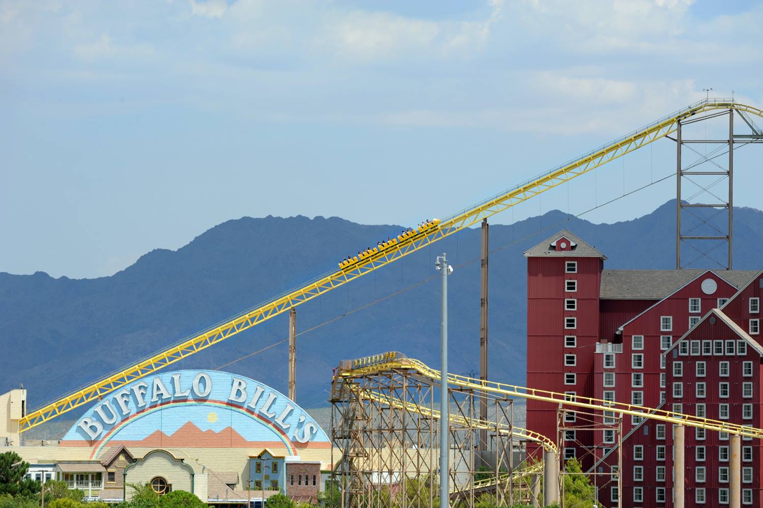 Outside of the city in the small town of Primm, Buffalo Bill's Hotel Casino was home to massive DESPERADO, once billed as the world's tallest hypercoaster. In an amazingly fast trip, DESPERADO departed from inside the casino and did an entire circle of the property before returning to the station. It was permanently closed after the pandemic.