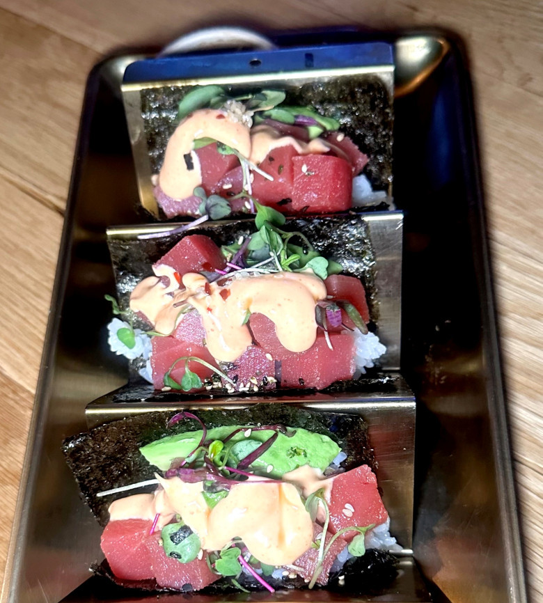 It was real nice to see Pachi-Pachi in downtown Vegas—the Japanese-themed cocktail bar/restaurant/listening lounge—positively percolating (despite the tourist slump) on a recent Saturday night a few months after its opening. I enjoyed the ahi tuna handrolls, gyoza (dumplings), and the house music, not to mention the space’s now famous surreal design touches (like a vintage telephone that connects you to another dimension). Thanks to the boundary-free mind of Branden Powers, Vegas has an essential new playground that artfully steers clear of the mundane.