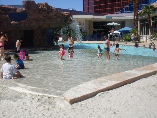 The D, According to their website, "The D Las Vegas Hotel offers a place to unwind and rooms that provide an escape from all the noise of the city." Oddly, you can barely find a mention of their roadside swimming hole among the bar, restaurant, casino, and room descriptions.
