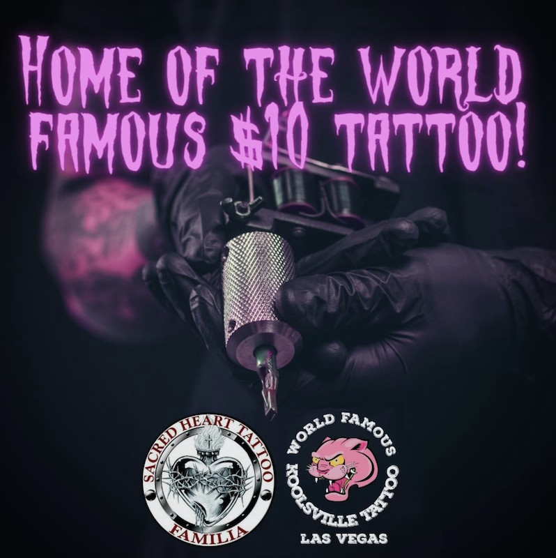 Koolsville Tattoo, also known as Sacred Heart Tattoo, is famous for its $10 tattoos. This is the most reputable establishment in Las Vegas for these budget-friendly pieces. You can rest assured that despite how cheap these tattoos are, you’ll get a piece that is done according to regulation.