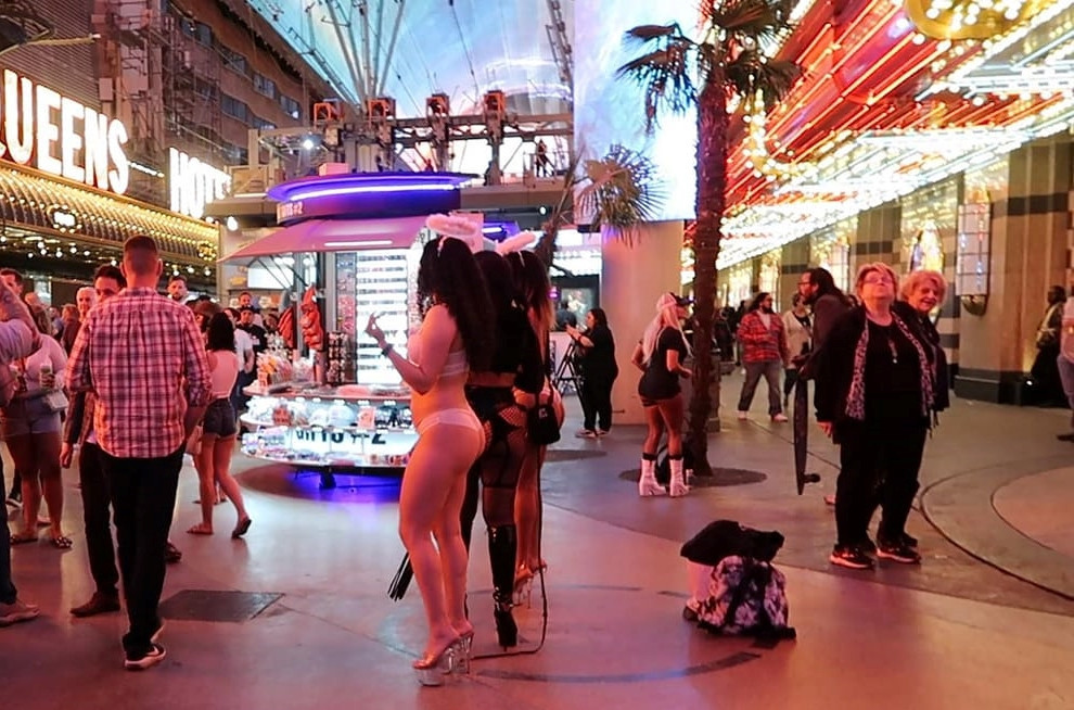 The pandemic may be over, yet the Beast still lives and breathes on Fremont Street. They don't call it "Sin City" for nuthin', you guys. There are hookers, panhandlers, bare asses and breasts, foul language, drunks, pickpockets, stabbings, brawls, and drug use, right out there in the open. That's not a judgment...just a statement of fact.