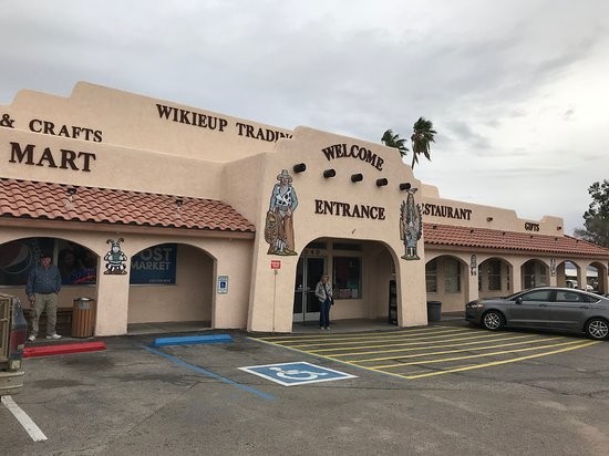 Wikieup, a town located half-way between Phoenix and Las Vegas. It is a perfect location for a bathroom stop, stretching your legs and getting some food if you're hungry. There is also a gas station. It's right on the road so there's easy access.