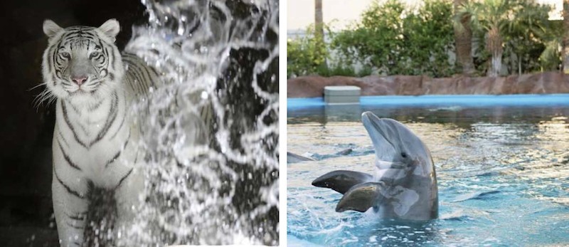 Siegfried and Roy were iconic Las Vegas entertainers. They became famous for their live magic shows that featured lions and tigers. The magicians legacy now lives on through the Secret Garden. The exhibit has been open for 30 years! It allows visitors to see wild animals up close while also providing education about wildlife preservation and conservation. A portion of ticket sales goes toward protecting wild dolphin populations.