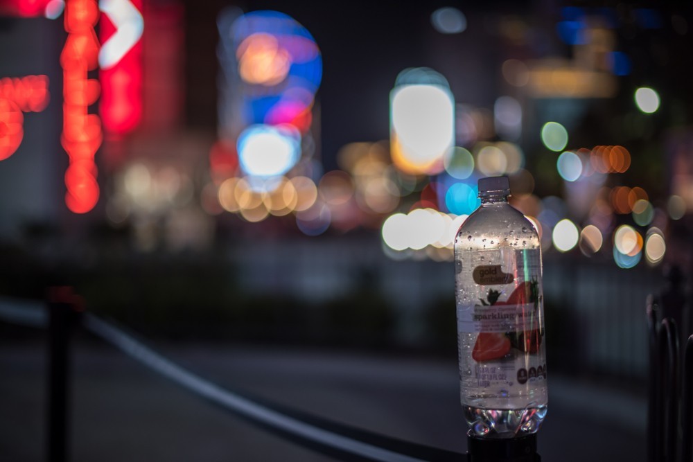 To avoid this, go to the grocery store or a pharmacy on the strip and buy a carton of bottled water, which will only cost a few dollars. At the same time, buy a collapsible water container for a dollar. Before you leave your hotel, fill your water container.