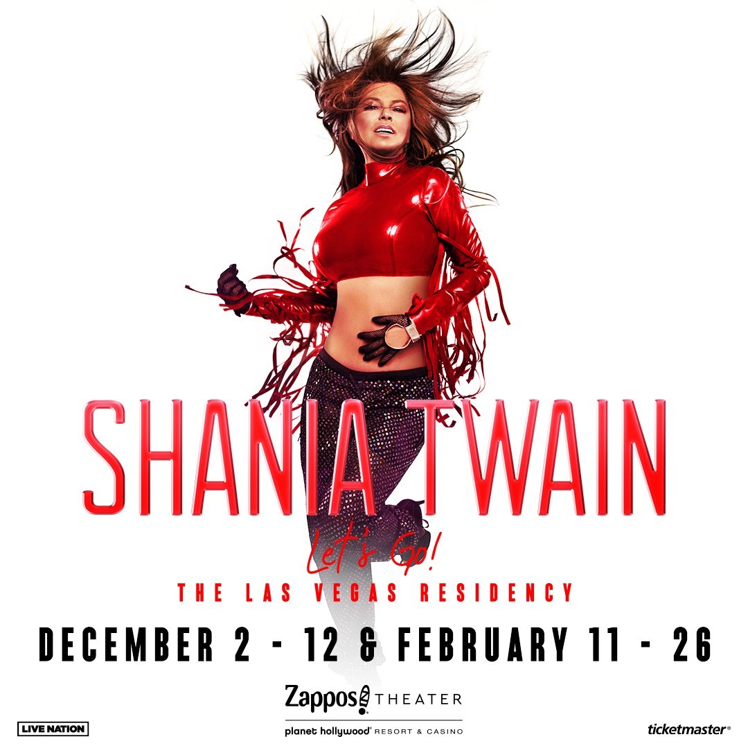 With Shania herself serving as creative director, Shania Twain "Let's Go!" The Las Vegas Residency is a concert celebration of one of Las Vegas' first female and country music headliners who has paved the way for other superstar residencies across the city. Designed exclusively for Zappos Theater and promoted by Live Nation and Caesars Entertainment, the high-energy production is a nonstop party, taking fans on a spectacular journey through Shania's monumental catalogue of hits, including "Man! I Feel Like A Woman!," "You're Still The One," and "That Don't Impress Me Much." Throughout the unforgettable evening, Shania dazzles the audience with eight different couture costumes designed by renowned celebrity fashion designer, Marc Bouwer.