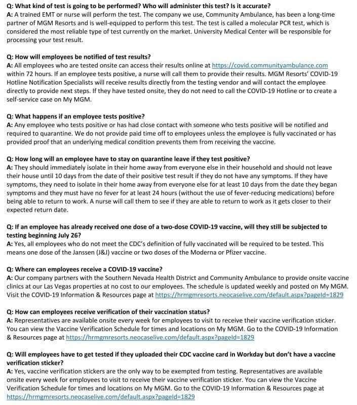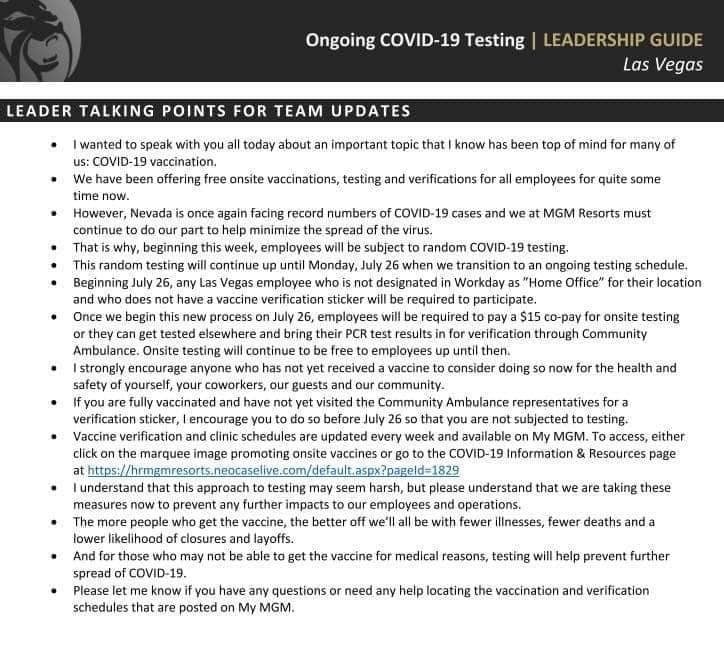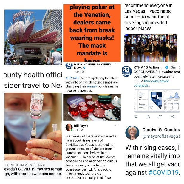 Dua Lipa s latest dance remix. Like it or not, the percentage of positive tests is rising daily, hospitals are bracing for the Delta variant, and most tellingly.... major casinos are announcing new testing and mask requirements for their employees. They re also making things more difficult for staffers who haven t been vaccinated.