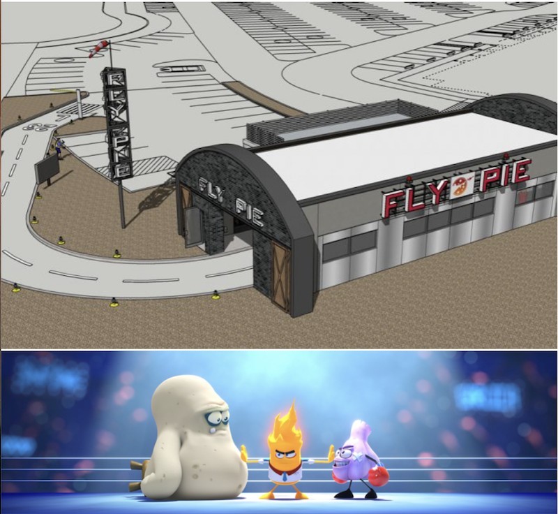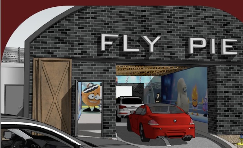 Place your order and then drive through what looks like an airplane hanger to pick up your food. While you wait, Fly Pie's original cartoons play on a cinema-sized screen inside the drive-thru tunnel. These characters coincide with the food. Watch the adventures of 10 characters like Mr. Heat, Freedom Fry, Lady Liberty, and Doh Ball in seven animated shorts; you might see a different one every time you visit!
