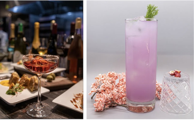 Start off with the Fuji Apple Salad, King Crab Tempura, or a charcuterie plate. Next, get some drinks going. Try a specialty cocktail like the pretty pastel purple elixir that comes with dried magical berries. Once you eat the berries, they change your taste buds from tasting sour to sweet. Take a sip of your drink before, and then after the change, it will now taste like lemonade! How did they do that?
