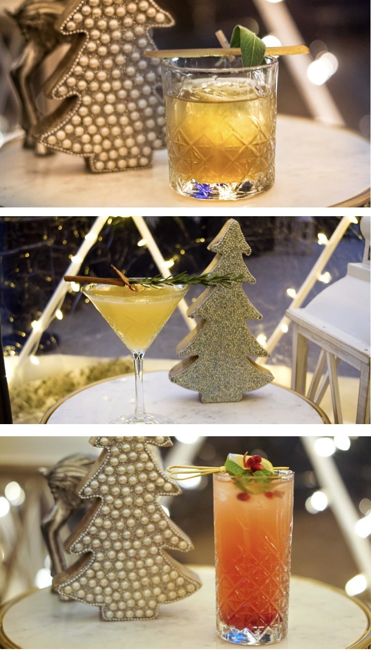 All of the cocktails have a wintery twist to match the theme. Choose from the grapefruit-flavored Under The Mistletoe, Honey & Sage, the warming Baby, It s Cold Outside, My True Love Gave To Me made with Grey Goose, and spiced apple cider South For The Winter. Champagne and wine are served too.