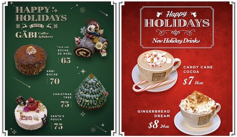 Gabi Cafe is known for its specialty coffees, decadent pastries, and desserts. In addition to their normal upscale menu, their Christmas-themed creations are just as amazing.