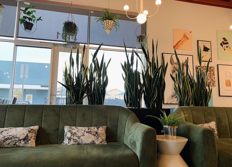 This shop is full of cute and funky art. Make sure to look around at the canvases on the walls of funny scenes and characters. The bathroom is decorated too, with a huge collage of goats photos! Seat yourself on the comfy sage green couches surrounded by snake plants or at one of the tables along the windows. This shop has a calming vibe, making it the perfect place to study or get some work done.