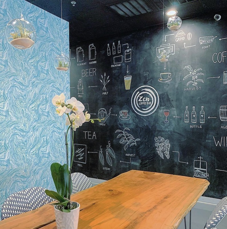 Stop by Zen Coffee Bar for specialty drinks and pastries.