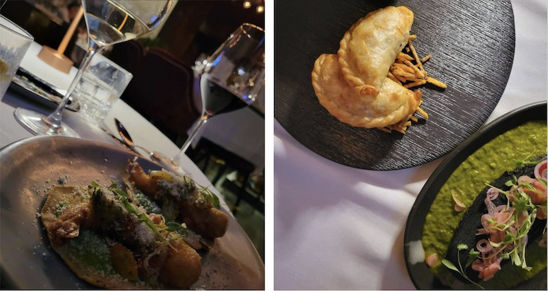 The menu features extravagant small plates of hot and cold items with Latin influence. Try options like Beef Tartare, a Hamachi Tostada, Seafood Tamale, Australian Wagyu Filet Taco, Shrimp Tempura Taco, or Lobster Empanada.