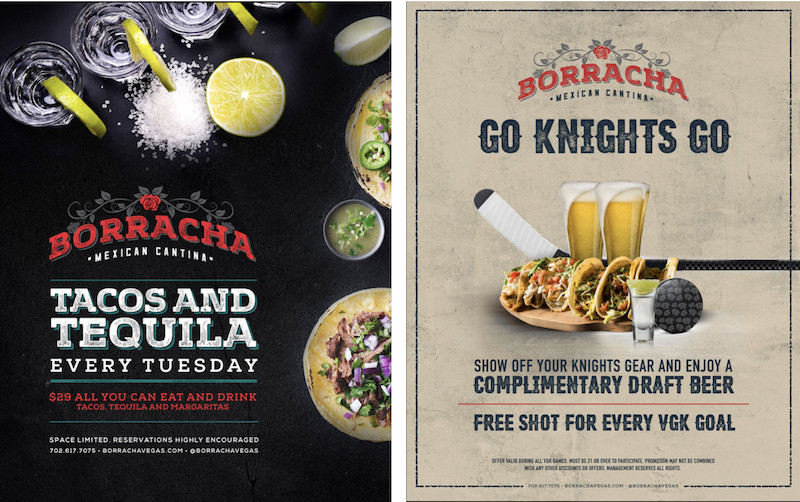 Make a reservation at Borracha for the next VGK game. When you show up wearing Golden Knights merch, you ll get a free draft beer. Plus, you ll get a free shot for every goal the Knights score!
