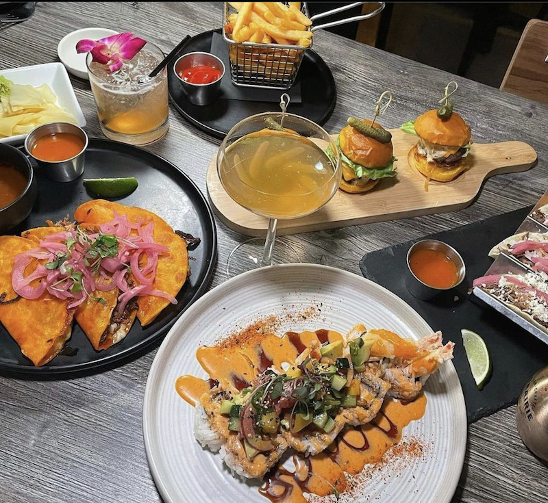 Try creative dishes like Korean Short Rib Tacos, Shrimp Tempura Tacos with avocado mousse, Ahi Tuna Tostadas, Kimchi Chorizo Fried Rice, Salmon Ceviche, Wagyu Sliders, and Elote Ribs.
