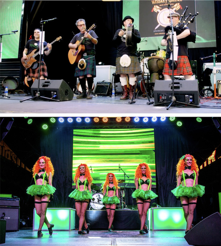 Throughout the week, watch 19 bands play on the main stage. Celtic influenced groups like rock band The Arcana Kings, Celtic Rockers, Whiskey Galore, Finnegan s Wake, local performers Darby O Gill and the Little People, The Angry Brian s, and Swainn will be bringing down the house with bagpipes. There will also be Celtic Dancers, flash mobs, and the Firefighters Parade.