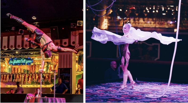 circus acts daily at the Carnival Midway as a free show. Every afternoon, guests can watch flying trapeze artists, silk aerialists, clowns, jugglers, and balancing acts. Catch the free circus Monday through Thursday at 1:30 pm and Friday through Sunday at 11:30 am.