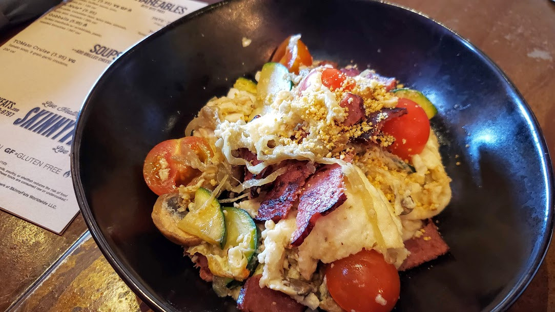 SkinnyFATS is open daily. Hours vary by location. Pick-up and delivery are available. Breakfast is served all day.