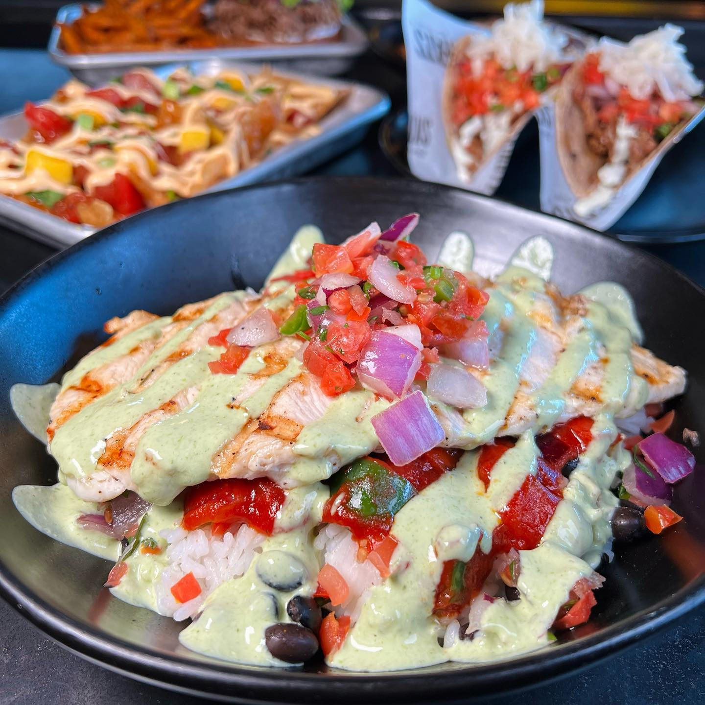 S motherload, a burrito filled with filet mignon, sausage, fajita peppers, potato, and eggs, then smothered with cajun cheddar sauce and pico. Perhaps the meat-lover in you catches a glimpse of