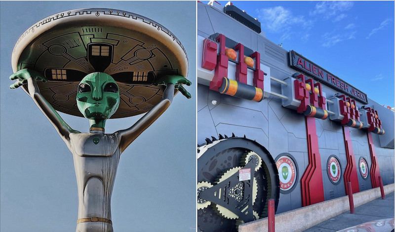 Visiting this shop is probably the closest you ll ever get to Area 51. Located in Baker, CA, it s completely decked out with aliens; Area 51-themed inside and out. It s an interesting place to stop, stretch your legs, and take some wacky pics.