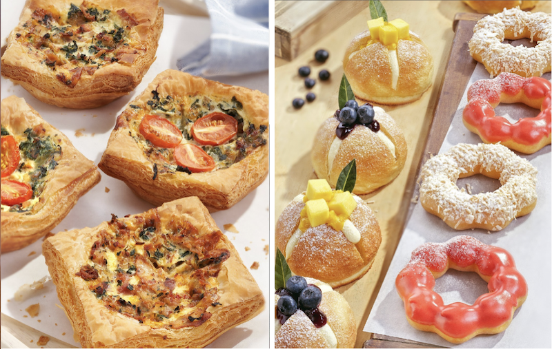 Some of the irresistible pastries on the menu include smoked sausage bread, crab meat croquette, croissant donuts, hash brown bread, bacon & cheese pastry, strawberry jam pies, and matcha mochi donuts. Order a variety to share with your group.
