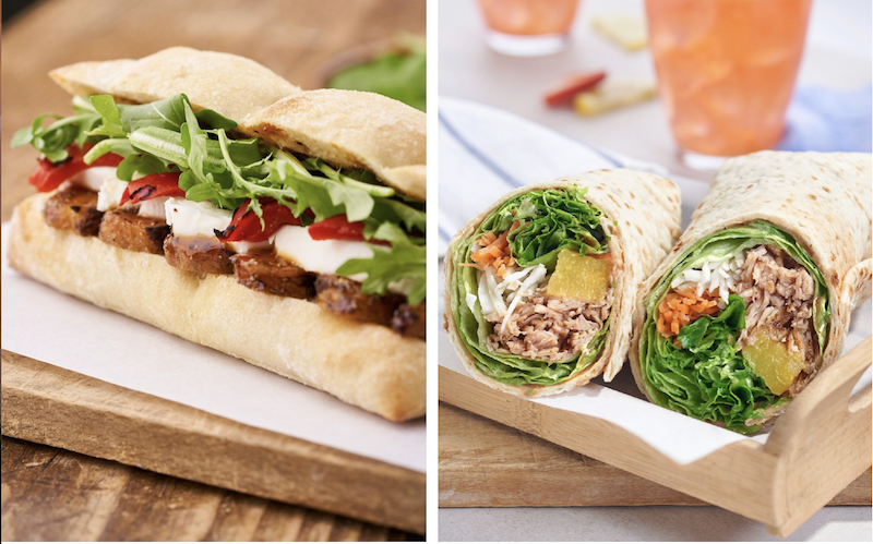 The gourmet sandwich menu features delicious options like the Hawaiian chicken wrap, Caprese baguette, chicken caesar baguette, egg & bacon brioche, and the ham egg swiss croissant. Chicken fajita, summer berry, and grilled chicken caesar salads are among the premade lunch options too.