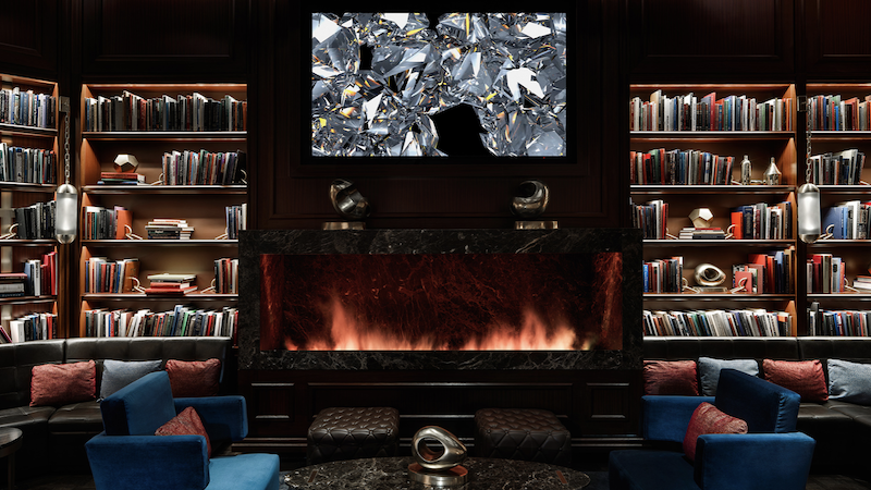 Enjoy your unique beverages in an equally unique space. The low-lit lounge actually looks like an old-fashioned library and study, complete with bookshelves and a roaring fireplace. The dark wood, leather chairs, and velvet couches feel luxurious yet comfortable.