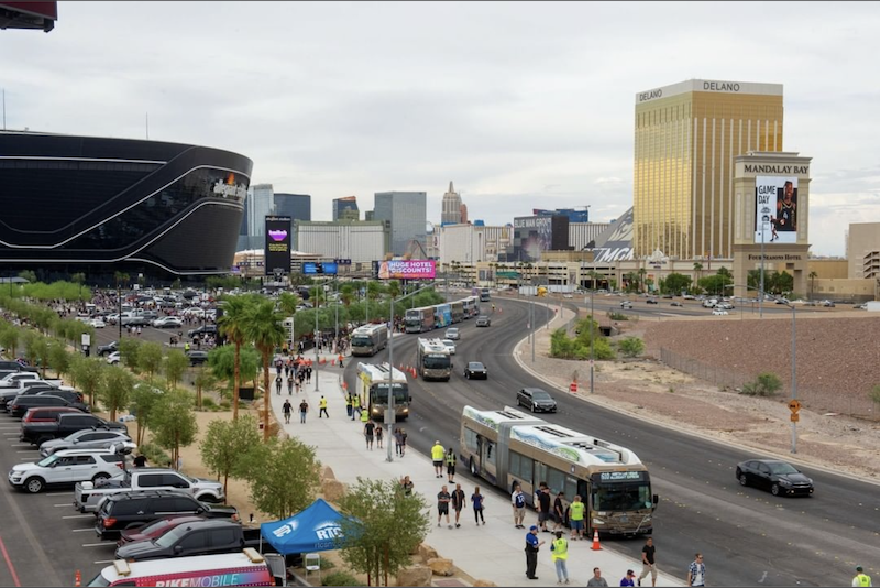 The RTC Southern Nevada runs Game Day Express shuttle buses to and from all of the Raiders and Vegas Golden Knights home games. These buses pick up and drop off at certain locations across town and go to and from the stadiums. Unlike a regular bus, there are no additional stops. You'll go straight to the stadium or your drop-off location. It’s easy, cheap, and takes the stress of finding parking out of the day.