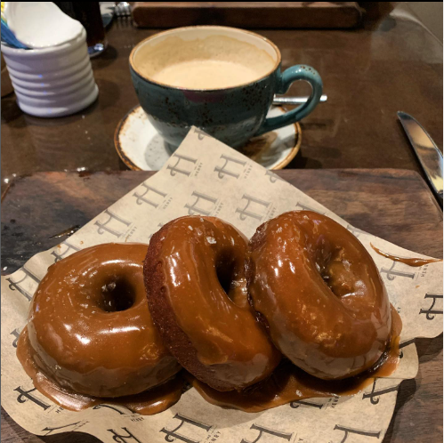 Warm banana compost filling w/salted caramel glazed donuts[/caption]
