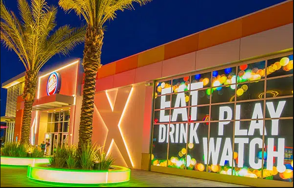 Eat, drink, and play at Dave & Buster’s. The 33,000 square-foot entertainment complex has massive HDTVs for a stadium-like seating experience. There are also tons of arcade games to play, and a full bar. The food is basically bar food.