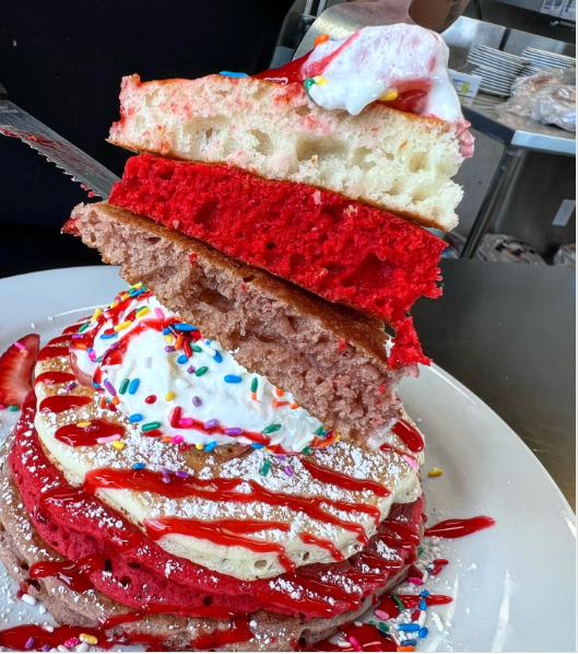 Here is another Las Vegas restaurant famous for its pancakes served around the clock. Du-Par's Restaurant & Bakery at the Suncoast Hotel and Casino has delicious buttermilk hotcakes, French toast, pancakes, and eggs. Their corned beef hash arrives hot with crispy edges. And their homemade soups and gravies are prepared the old fashion way, 24/7.