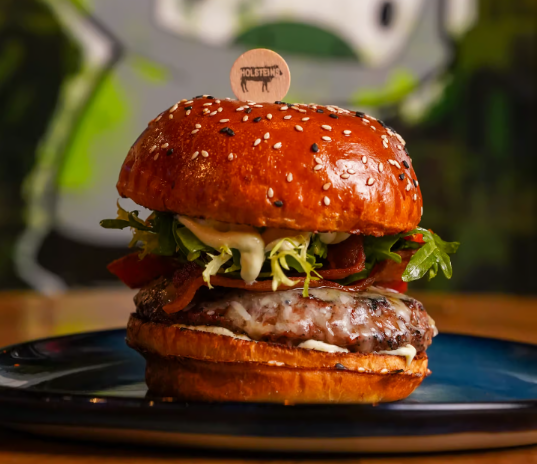 Holsteins Shakes & Buns at the Cosmopolitan is the ultimate Las Vegas eatery for anyone craving tender and juicy burgers. Its Gold Standard burger comprises aged goat cheddar cheese, smoked bacon, tomato confit, chive aioli, and baby arugula. Other popular burgers on the Big Buns menu include prime beef and mushroom patties, Crazy Bird chicken burgers, homemade turkey patties, Gold Standard aged goat cheddar cheese, and vegetarian burgers. Enjoy your favorite burger with signature milkshakes and American snacks.