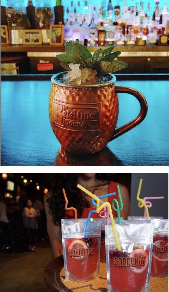Corduroy has good local bar vibes, nostalgic 1970s decor, modern music, and awesome drinks.