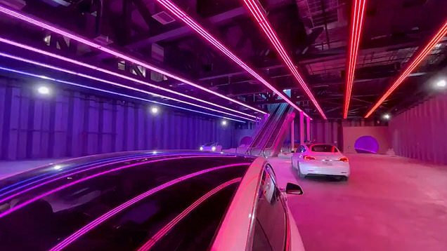 A ride through the LVCC Loop will zoom you across an LED-lit tunnel under the streets of Las Vegas. A fleet of Tesla Model 3 and Model X cars pick up and drop up to 4,400 passengers per hour at the tunnel stations along the four halls of the convention center and Resorts World.