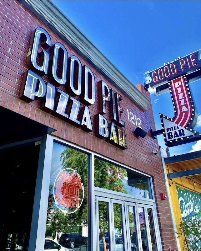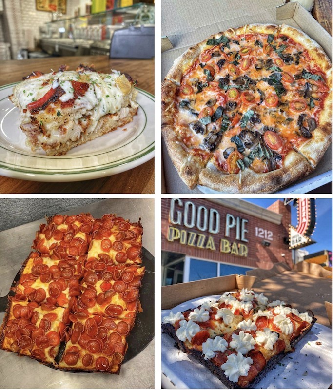 Good Pie Pizza Bar downtown on Main Street makes outrageous, decadent pizzas and other handheld creations like Chicken Parm-stuffed pizza slices.