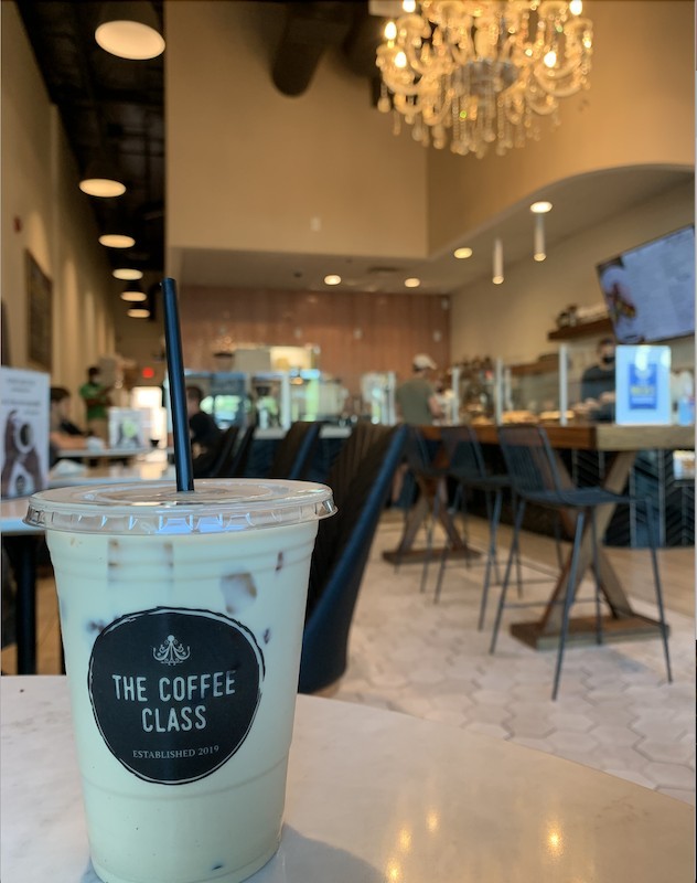 The Coffee Class for specialty coffee, tea, breakfast dishes, and homemade pastries. The shop opened in 2019. It s small but cozy. When you enter, your eyes will be drawn to the sparkling chandelier in the middle of the shop. These decorative details create an upscale vibe.