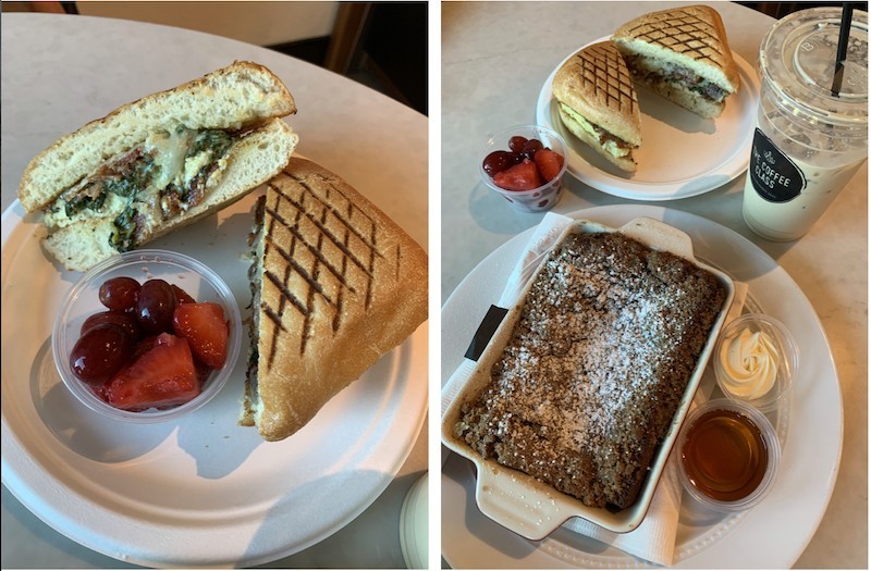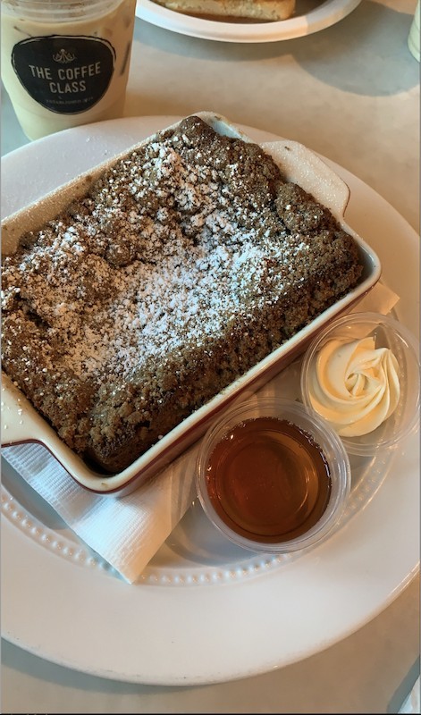 The menu is full of fancy treats and drinks. Try the Quiche of the Day, homemade biscuits, smoked salmon toast, the breakfast panini, or ham and fig panini. The Baked Creme Brulee French Toast topped with orange blossom butter and syrup is a sweet, yummy breakfast.