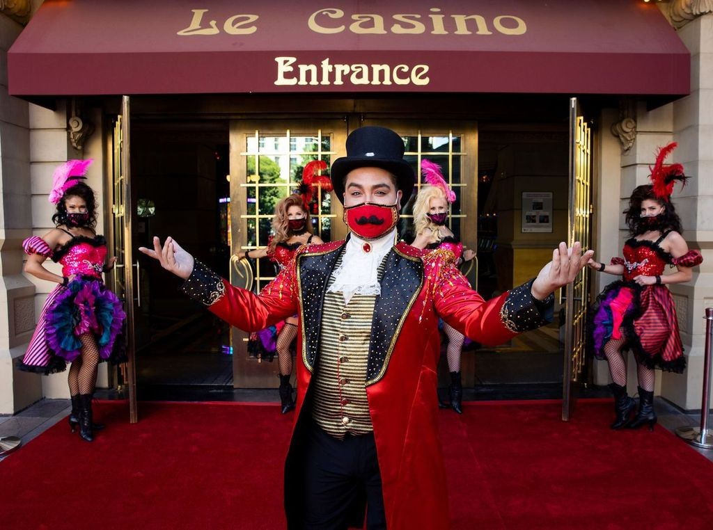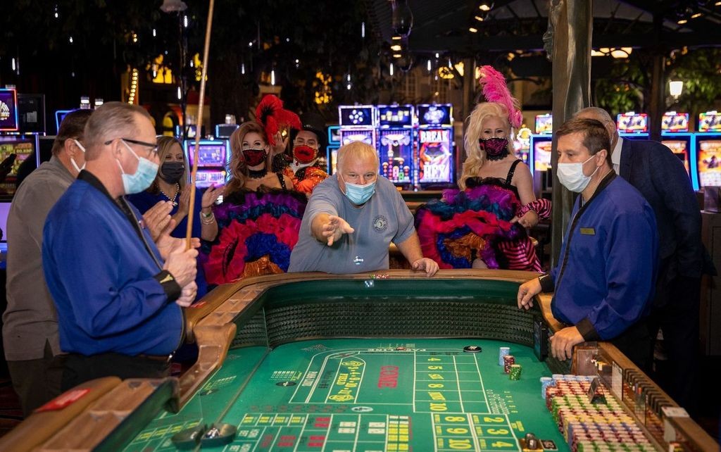 Paris Las Vegas marked the reopening of its doors on Las Vegas Boulevard to the public with a special French-inspired moment featuring can-can dancers, a Monsieur Loyal ringmaster, Caesars Entertainment Regional President Gary Selesner and Paris Las Vegas General Manager Sherri Sosa. After the Monsieur Loyal initially welcomed guests outside with "bienvenue" and led the countdown from "trois, deux, un," Sosa pushed the button to launch blue, white and red confetti over the entrance as the resort officially reopened its doors. Additionally, first casino guest Roy Anderson ceremoniously rolled the first dice at a craps table with Selesner and Sosa cheering him on inside Paris Las Vegas.